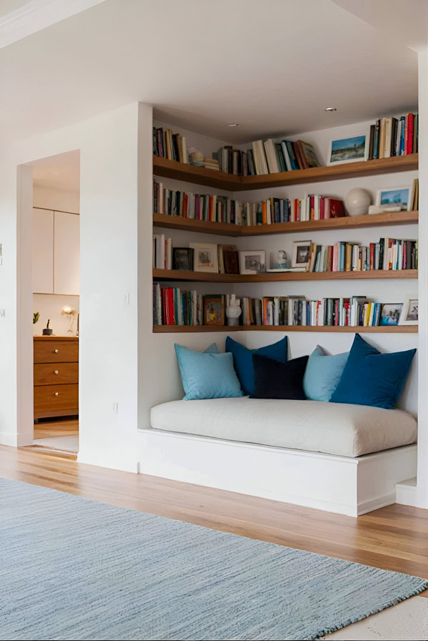 Utilizeaza mobilier vertical precum dulapuri inalte si subtiri. Instaleaza rafturi sau cuiere la diferite inaltimi pe pereti. Considera optiuni de mobilier multifunctional, cum ar fi banci cu spatiu de depozitare incorporat.